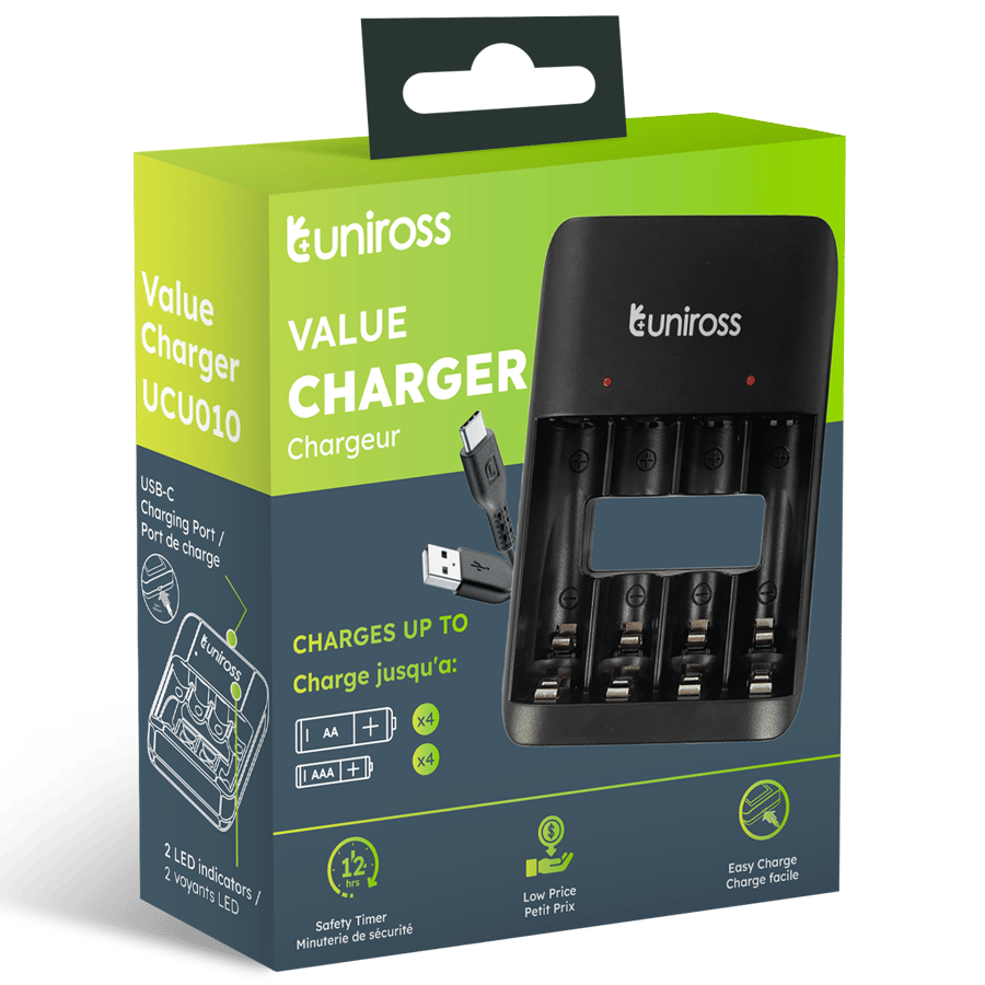 Зарядно за 4 акумулаторни батерии АА / ААА - Uniross Value с USB-C