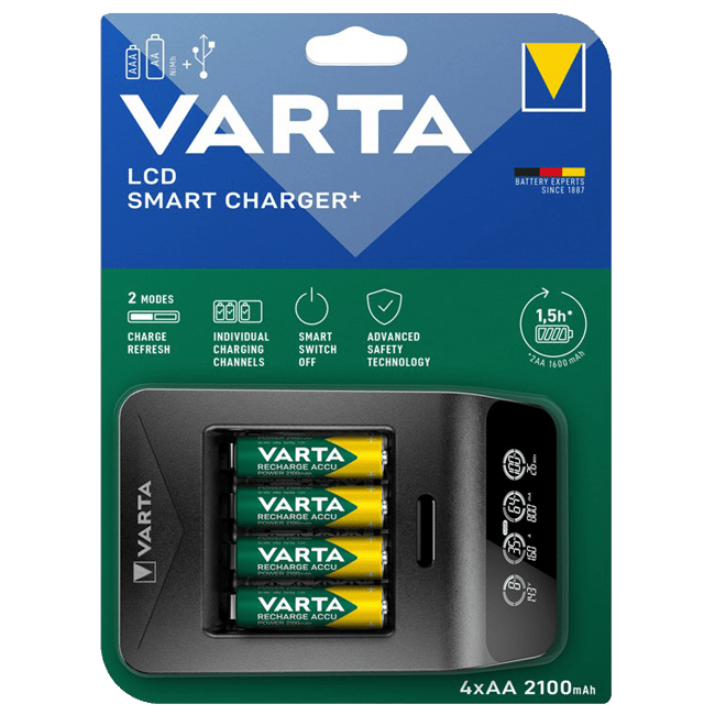 Smart зарядно за акумулаторни батерии VARTA с LCD дисплей + 4 батерии AA 2100 mAh