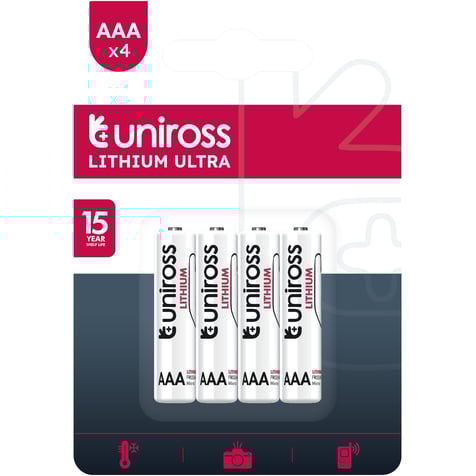 - Литиеви батерии Uniross ААА FR3 Ultra Lithium AAA - 4 батерии-5%Цена: 7.29 € | 14.26 лв.Каталожна цена: