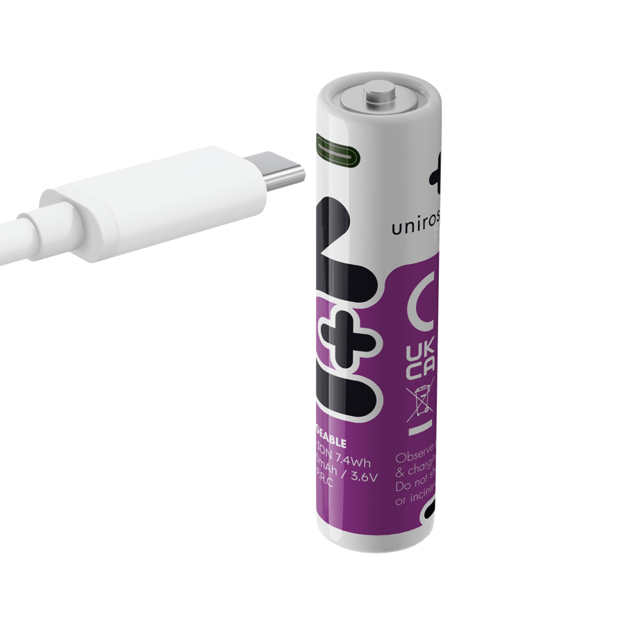 Литиево-йонна батерия 18650 Uniross 18650 - 2000 mAh - 10A + USB Type C